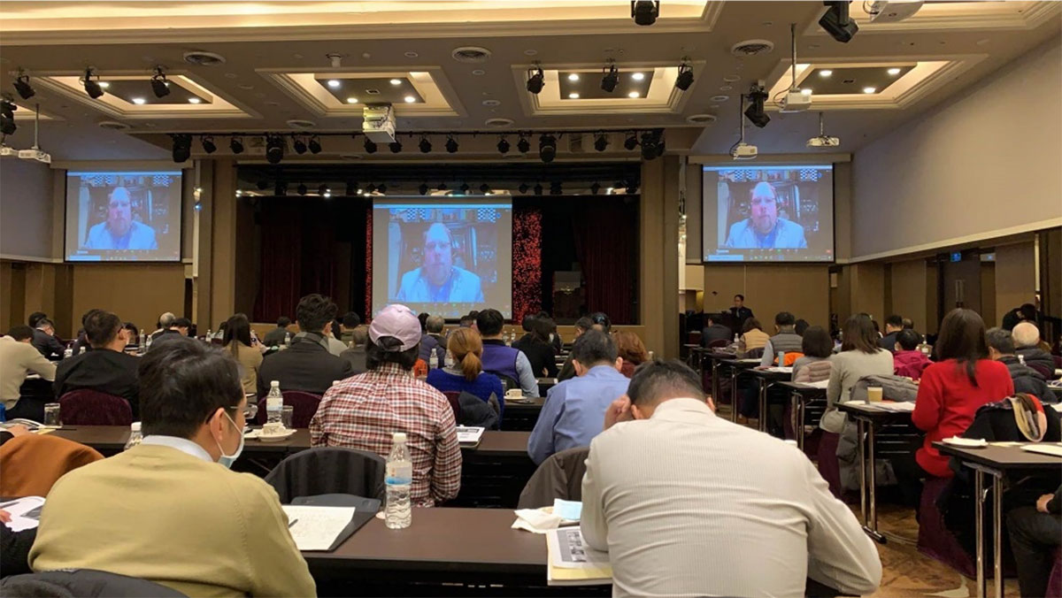 【與會者專心聆聽線上演講者】