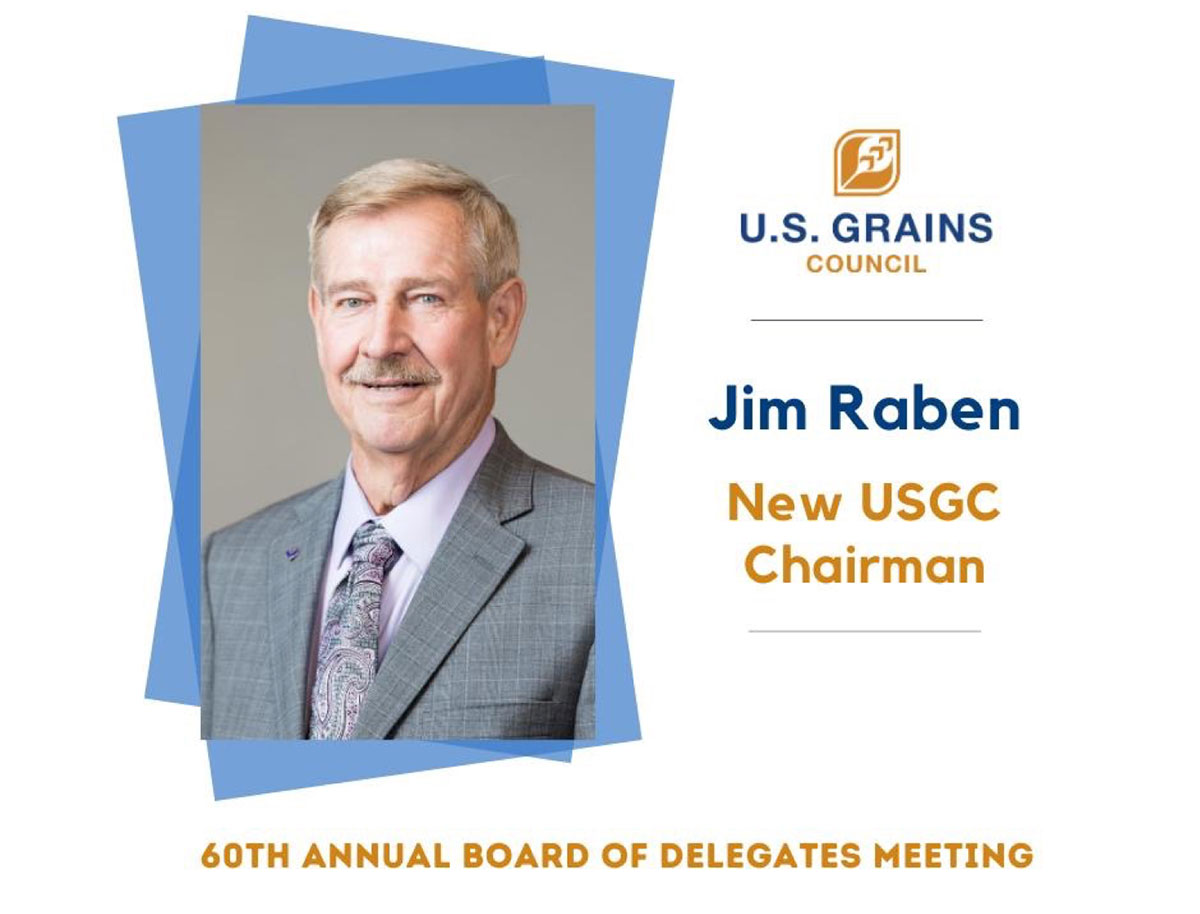 美國穀物協會(USGC)的理事代表在7/28週二舉行的第60屆年度代表會議上選舉了伊利諾伊州玉米市場協會代表吉姆·拉本(Jim Raben)為理事會主席。拉本以「建立關係,建立貿易」做為年度工作主題,他在致辭中說:「穀物協會全天候工作,並在全球範圍內尋找和擴大美國穀物產品的新需求。這就是為什麼我選擇主題的原因。我們在一起更加堅強,集體的聲音被聽到,我們可以共同努力實現我們的共同目標。」