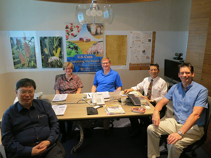 2016年5月20日國際畜牧聯盟拜訪本協會,右圖起畜產試驗所遺傳育種組吳明哲組長,(ICAR)副主席Daniel Abernethy博士(澳籍),(ICAR)副主席Jay Mattison博士(美籍)及夫人與美國穀物協會張學義駐臺代表。