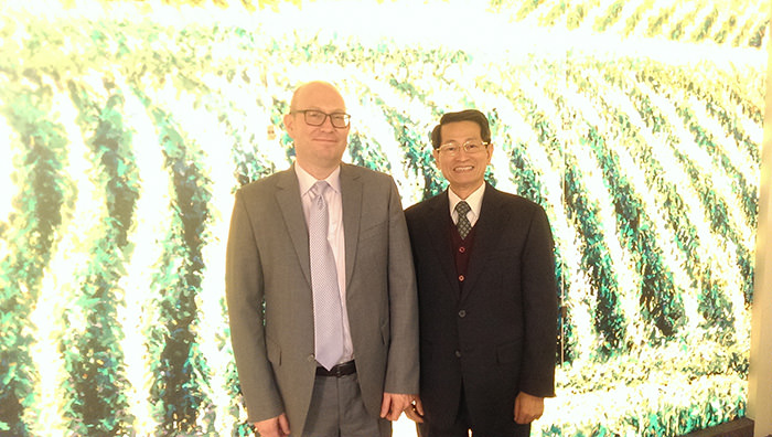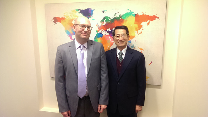 Mr. Mark Petry,(圖左)曾於2017年1月11日前往本協會美國總部與本協會駐臺代表張學義開會。