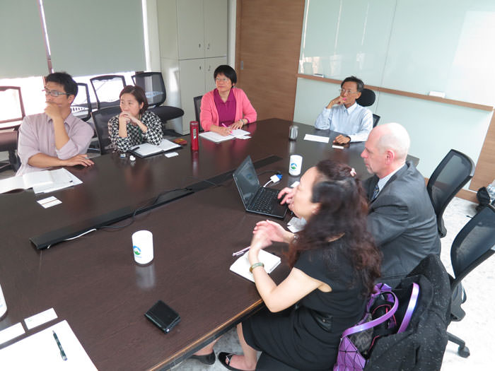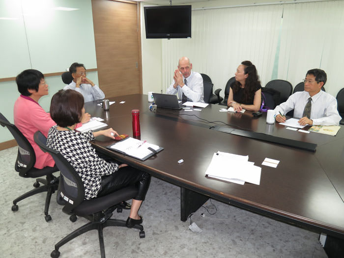 於3月17日拜訪行政院環境保護署資源回收管理基金管理委員會,圖左起,費齊信副組長,張紹欣技術師,李守謙組長,NatureWorks公司Mr. Steve Davies業務處長,孫孝慧顧問,美國穀物協會張學義駐台代表。