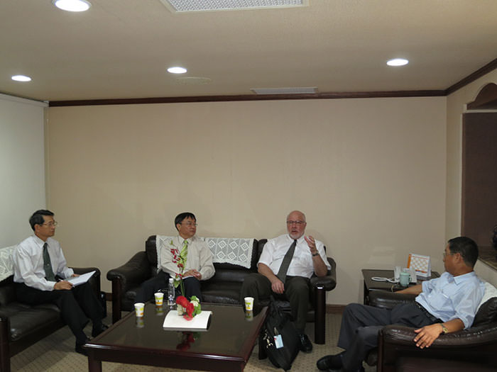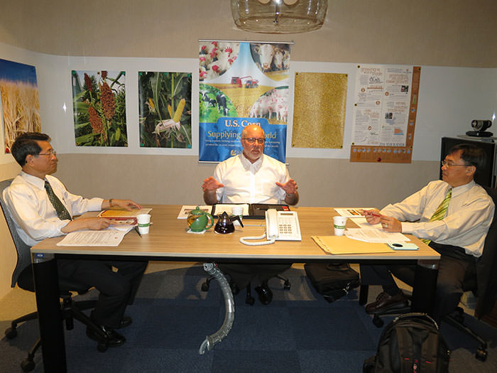 2016年5月16日拜訪美國穀物協會。圖右起,陳淵國博士,Dr. Jerry Shurson,美國穀物協會張學義駐臺代表。