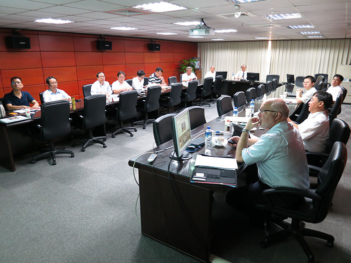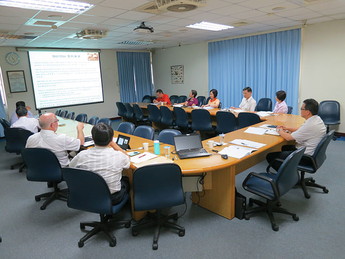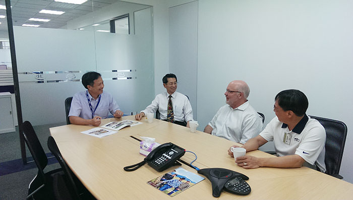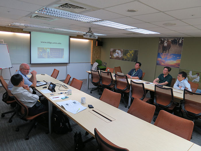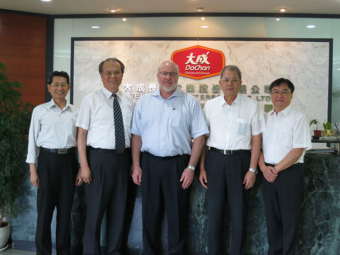 2016年5月19日拜訪大成長城公司。圖右起,陳淵國博士,梁建國副總經理,Dr. Jerry Shurson,莊坤炎總經理,美國穀物協會張學義駐臺代表。
