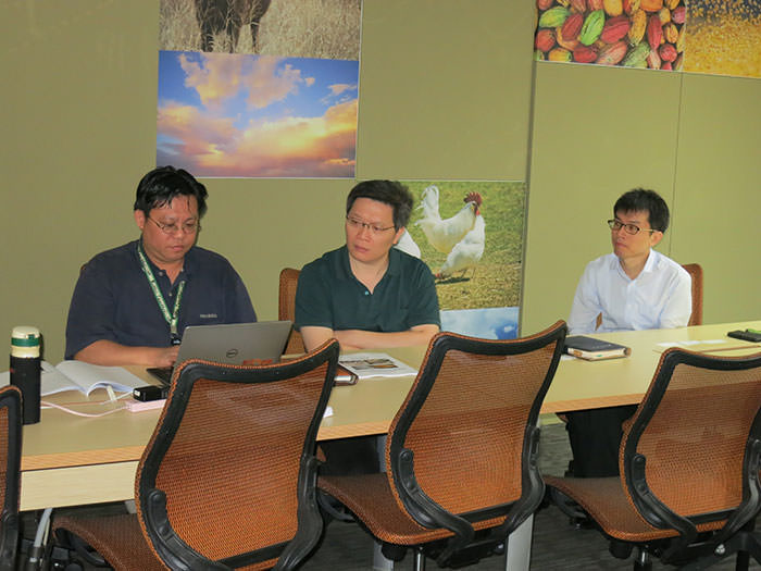 2016年5月17日拜訪中美嘉吉股份有限公司。圖左起,詹建良經理,黃俊程主任,何東盈先生。