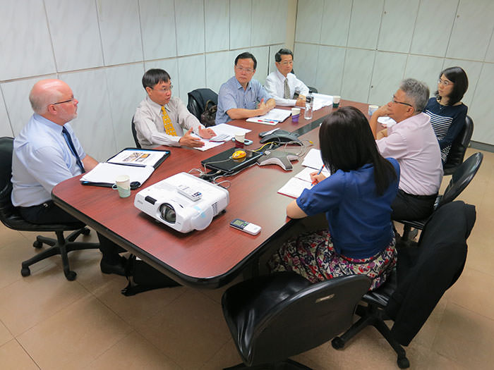 2016年5月16日拜訪臺灣飼料公會。圖右起飼料公會鄒信南總幹事,Dr. Jerry Shurson,陳淵國博士,美國穀物協會張學義駐臺代表。