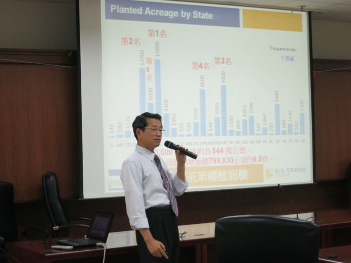 美國穀物協會駐台代表張學義主講美國玉米產銷現況。