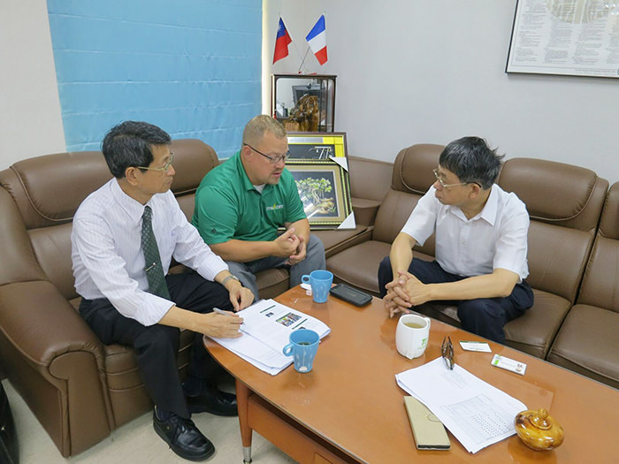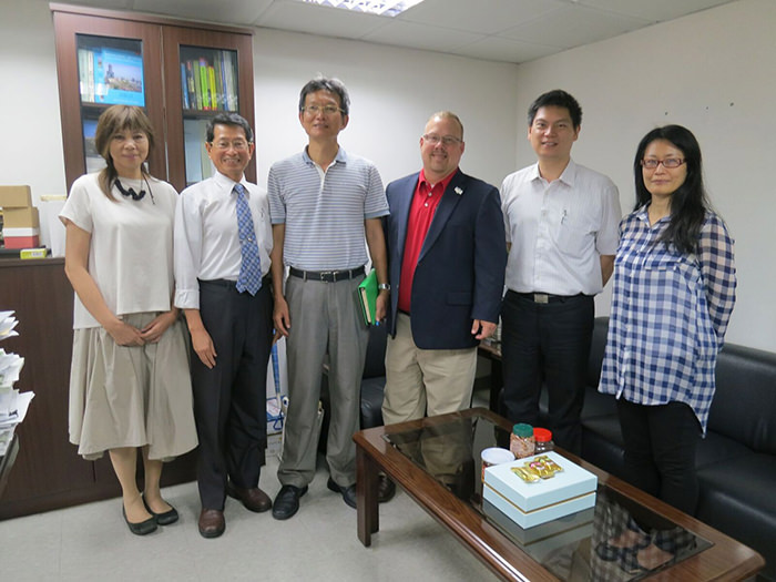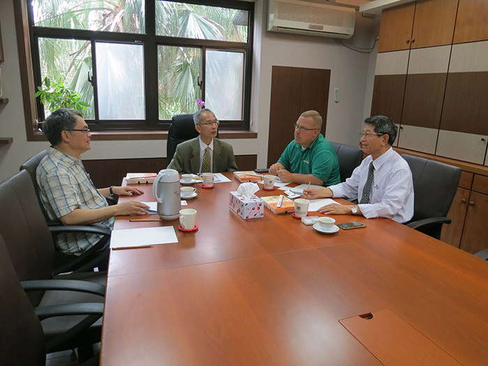 於7月11日參訪國立台灣大學生物資暨農學院,由盧虎生院長(左1)與徐濟泰教授(左2)接待。