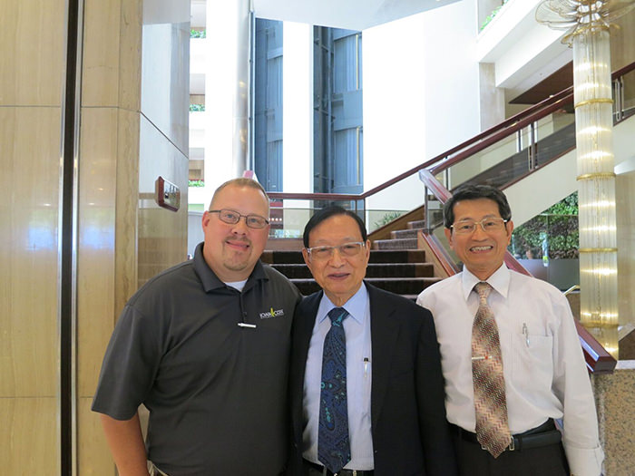 於7月12日參加台灣飼料工業同業公會舉辦之研討會,與理事長鄭武樾博士(中)合影。