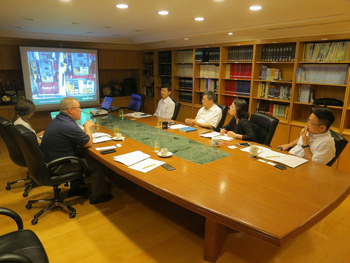 於7月13日參訪台灣中油股份有限公司,由國際事務處侯玲婉處長(右1)、油品行銷事業部林毅勳專員(右2) 、與另兩位人員接待。