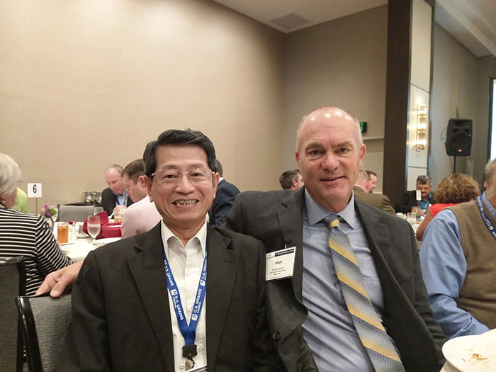 駐丹佛台北經濟文化辦事處處長張詩瑞(右1)與組長劉坤城(左1)蒞臨會場指導。