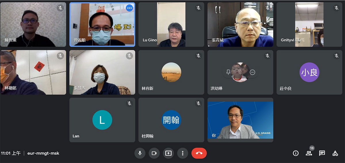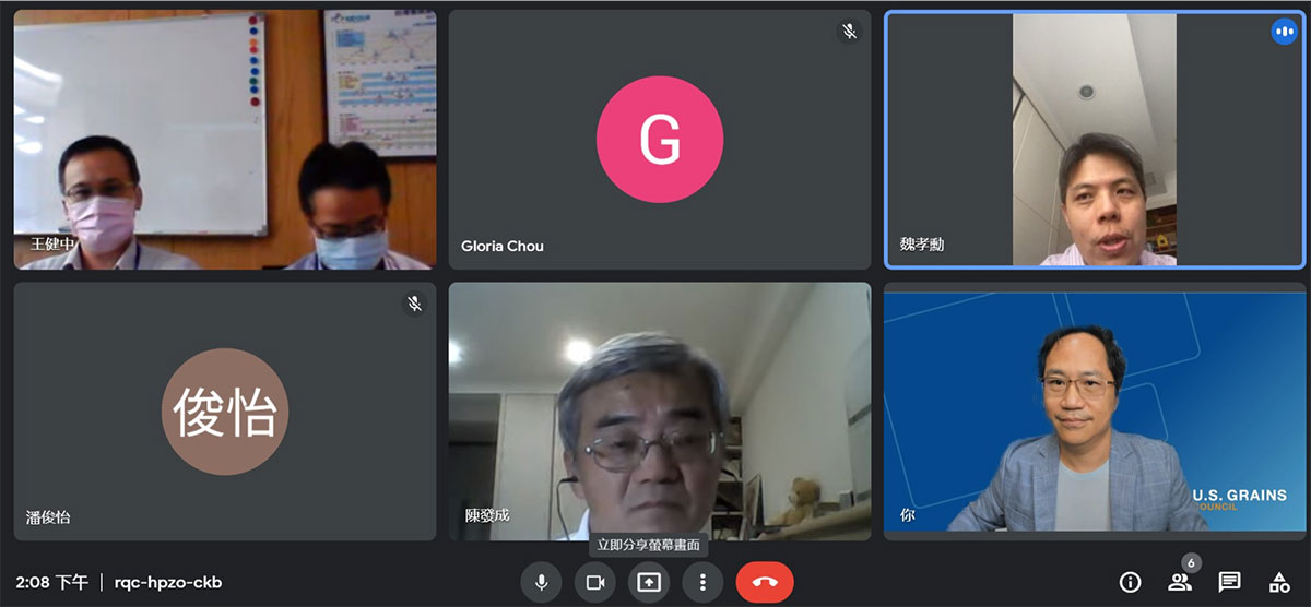 於2021-6-22與中華食物網陳發成執行長、楊朝凱副總、魏孝勳副總、賴啟仁協理、潘俊怡經理等人進行視訊會議。中華食物網是大中華區的B2B農業綜合企業電子商務平台,為世界各地的農業綜合企業社區提供提供專業的服務。中華食物網也是在臺灣和中國市場推廣美國玉米乾酒粕DDGS的先驅,長期以來支援美國穀物協會的所有發展項目。中華食物網的客戶也多是台灣養豬場及中小型飼料代工廠,是美國玉米的愛用者。透過視訊會議我們交換全球玉米市場趨勢的看法,以及台灣現貨市場及穀物船期的動態,並討論未來如何通過Facebook進行直播合作來即時傳播市場資訊,以期深化服務當地飼料和畜牧場客戶。