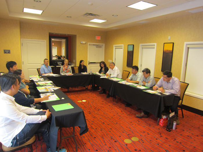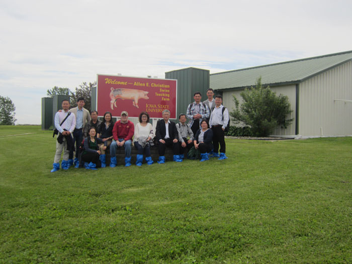 「為協助我國養豬業者瞭解美國養豬產業現況,接觸飼養管理之最新技術與設備、與提高豬病防治能力以增進生產效率並提高豬肉品質,美國穀物協會於今年6月1日至12日組團前往美國考察。該團曾參觀全球養豬大展(World Pork Expo),並參觀玉米酒精與玉米酒粕工廠、玉米田、愛荷華州立大學、明尼蘇達大學等等。該團團員12名,包括財團法人中央畜產會執行長朱慶誠、行政院農業委員會家畜衛生試驗所副研究員鄧明中、台灣糖業股份有限公司畜殖事業處執行長林世榮、財團法人農業科技研究院副研究員孫豫芬、財團法人農業科技研究院獸醫師張權星、昌興畜牧場經理陳壁瑤、廖學崇牧場場長廖容淑、全民畜牧場總經理丁福慶、秝秝股份有限公司負責人何俊利、瑞祥牧場場長方俊偉、中國文化大學動物科學系副教授兼主任羅玲玲、美國穀物協會周佳欣經理。該團由中央畜產會執行長朱慶誠擔任團長,周佳欣經理擔任領隊。