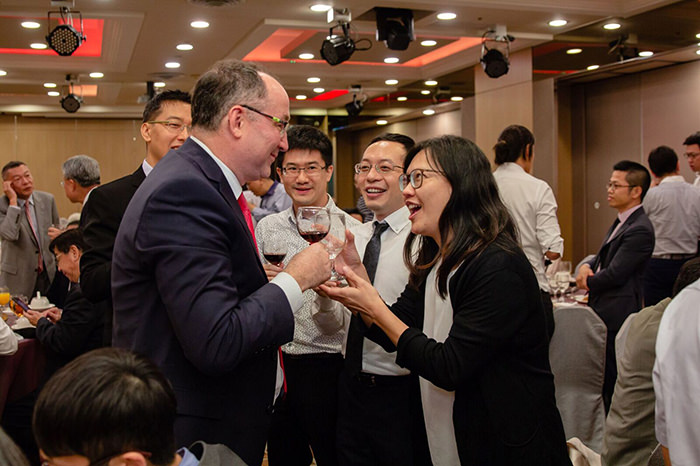 美國穀物協會理事長凱樂爾女士(Ms. Debra S. Keller)、總裁兼執行長施立德先生(Mr. Thomas N. Sleight)、穀物協會駐臺代表張學義先生與夫人向來賓敬酒
