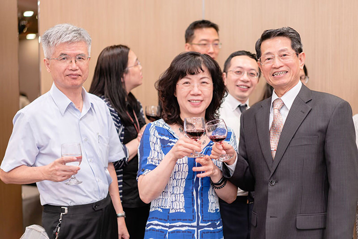 台灣先正達股份有限公司經理游秋綿、台灣拜耳股份有限公司經理林峰麒、台灣杜邦股份有限公司經理孫仰山、孟山都遠東公司台灣分公司經理陳雅慧、與作物永續發展協會秘書長劉亦麟蒞臨道賀