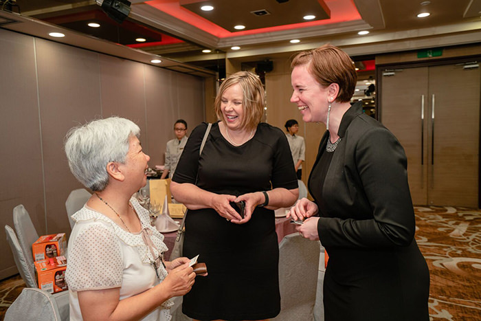 美國穀物協會理事長凱樂爾女士(Ms. Debra S. Keller)、執行秘書艾博敦女士(Ms. Abigail M. Appleton)與畜產試驗所李春芳組長相見歡