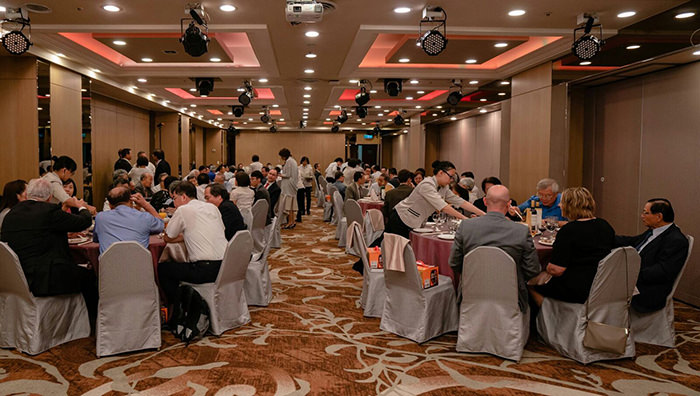 當天晚上的晚宴席開10桌,出席的來賓約100位。晚宴開始,美國穀物協會理事長凱樂爾女士代表主辦單位致謝詞。她提及我國是美國農產品的主要市場,穀物協會在台灣的工作涵蓋很廣,包括穀物的貿易、政策、與行銷,推廣的項目包括玉米、高粱、大麥、生物可分解環保材料、玉米酒粕、與玉米酒精,也積極參與並協助農產品貿易赴美友好訪問團。穀物協會在臺灣的推廣工作符合穀物協會發展市場、促進貿易、與改善生活的宗旨。謝謝各界45年來對穀物協會的支持與協助。凱樂爾女士並宣佈穀物協會駐臺代表張學義先生即將退休,穀物協會美國總部將於今年八月初在美國丹佛市舉辦會員代表大會,將邀請張代表前往參加,並將頒贈「終身成就獎」(Lifetime Achievement Award )給他,以表彰他在穀物協會工作34年來的付出與貢獻。