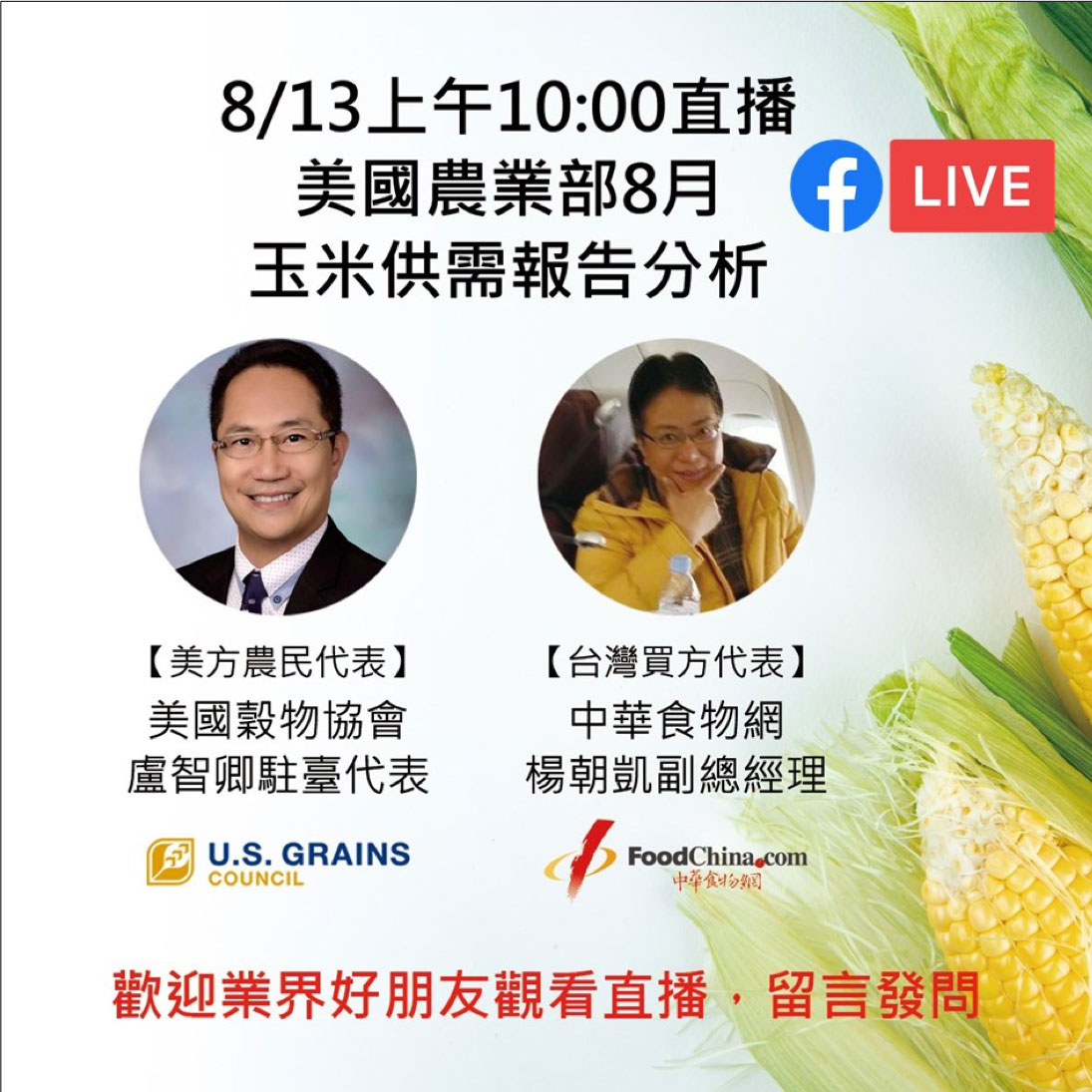 美國穀物協會與中華食物網合作,運用社群媒體臉書直播,對美國農業部每月的供需報告及玉米市場展望提供即時的分析評論。