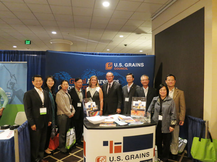 茲為介紹美國玉米與玉米製品(例如玉米酒粕)產業現況及其在禽畜飼料的應用,本協會曾於2014年10月20日至31日籌組『玉米與玉米酒粕考察採購團』前往美國參觀訪問。該團除參加10月20日至22日在西雅圖舉辦的『2014年出口交流研討會』(Export Exchange 2014)外,並曾參觀玉米田、穀倉設備、玉米酒粕廠商、穀物裝運設備等等。該團團員共有八名,包括台灣卜蜂企業股份有限公司鄭武樾董事長、台灣糖業股份有限公司鍾得華經理、大成長城企業股份有限公司劉建忠副總經理、中美嘉吉股份有限公司蔡淑媺經理、三合溢企業股份有限公司顏碧貞經理、中華食物網李承佑主任、達邦蛋白股份有限公司劉昌宇博士、美國穀物協會張學義駐台代表。該團由鄭武樾董事長擔任團長,張代表擔任領隊。