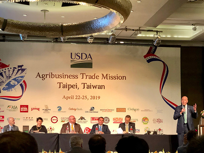 美國農業部於4月22日至25日訪問台北,由農業部海外服務署署長艾斯里(Ken Isley)擔任團長,率領包含49位美國農產企業及農場組織的代表來台交流,為美國農業部首度籌組貿易訪問團來台。
