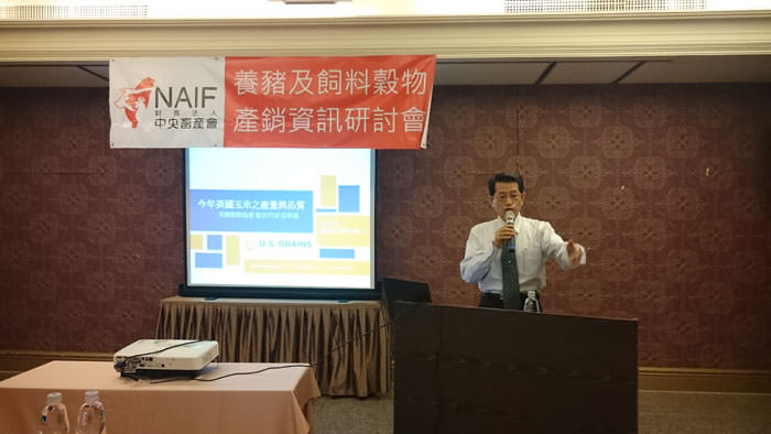 美國穀物協會與中央畜產會共同於10月16日下午在台中新幹線花園酒店水仙廳舉辦『養豬及飼料穀物產銷資訊研討會』。美國穀物協會駐臺代表張學義主講『今年美國玉米產量及品質報告』、中華全球食物公司楊朝凱協理主講『大宗穀物現況分析與採購建議』、和中央畜產會傅敬懿專員主講『近期國內外毛豬產銷資訊分析』。
