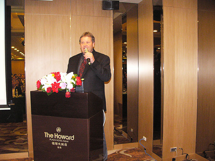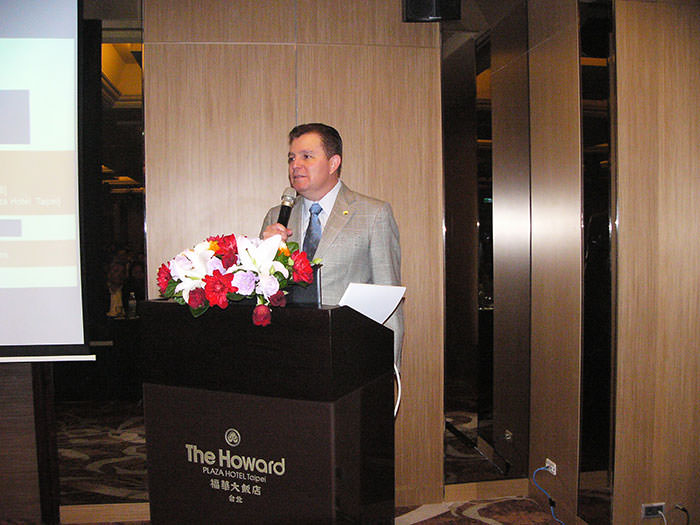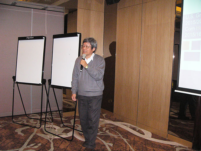 美國穀物協會美國總部全球貿易經理柯德樂先生主講『2015/2016年美國玉米收穫時之品質報告』。