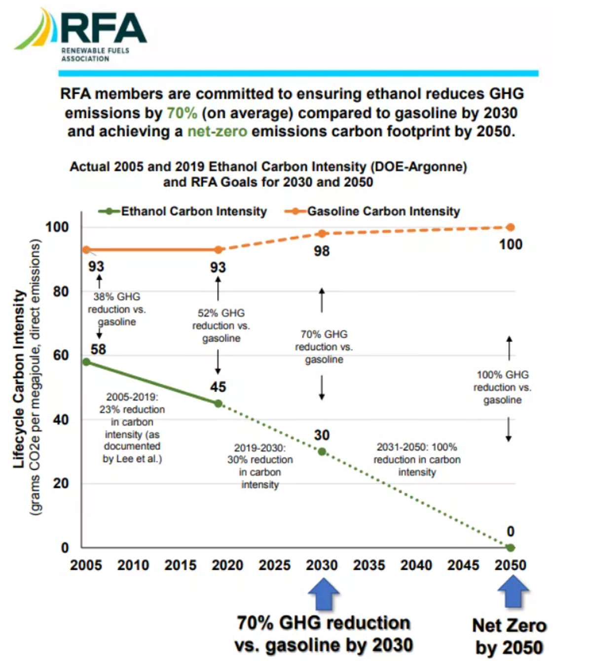 據美國能源資訊管理局稱,生物燃料乙醇對二氧化碳排放的影響取決於燃料的製造方式以及是否考慮了其對土地利用的影響。農業部在7月份表示,以玉米為原料的生物燃料乙醇的溫室氣體排放量比以能源當量計算的汽油低約39%。
